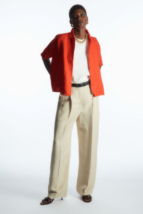 Chemise en lin orange vif à manches courtes de Cos