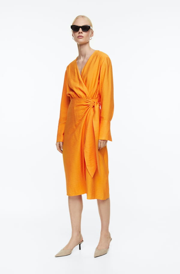 Robe orange portefeuille avec détail noué de H&M