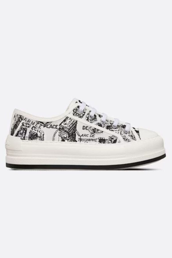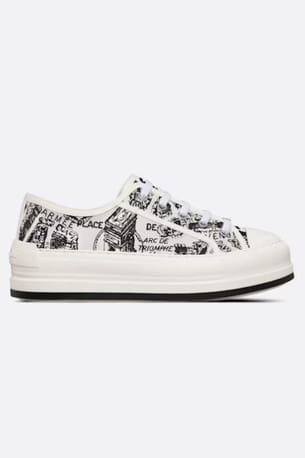 Baskets à plateformes en coton brodé motif plan de Paris blanc et noir "Walk'n'Dior" de Dior