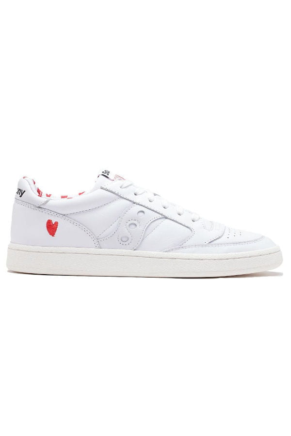 Baskets en cuir à coeur rouge brodé et imprimé coeurs "St. Valentine Jazz Court" de Saucony
