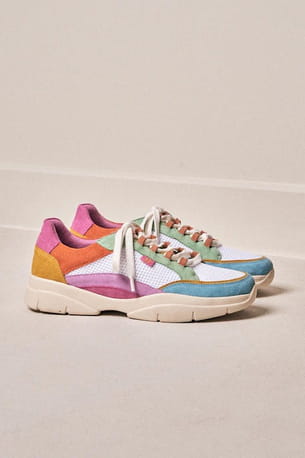 Baskets en suède et mesh ciel blanc et vert d'eau "Laura" de M.Moustache