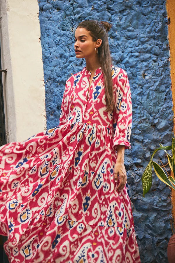 Robe imprimée rouge et bleu "Ikat" d'Anja