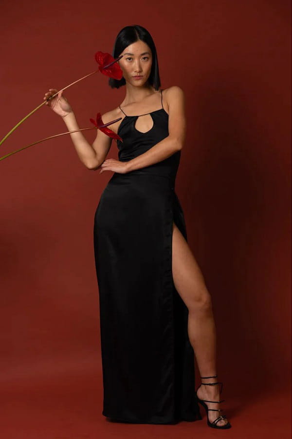 Robe longue noire fendue "Las Lolas" d'Amlul