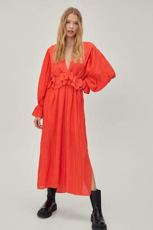 Robe longue plissée à volants et décolleté plongeant de Nasty Gal
