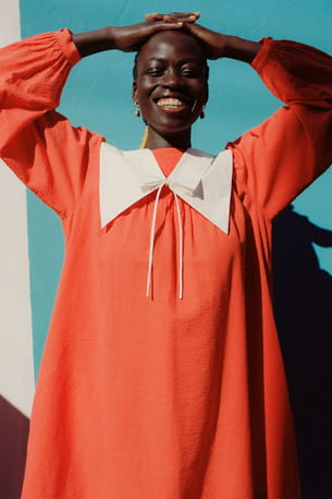 Robe en coton bio et lin orange à col Claudine de & Other Stories x Sindiso Khumalo
