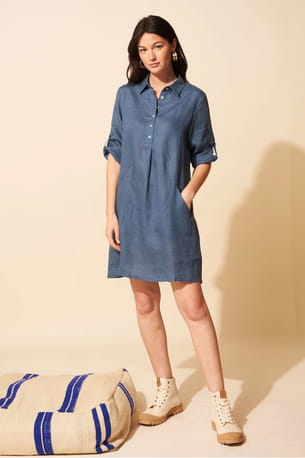Robe chemise courte indigo en lin "Racyba" de Sud Express
