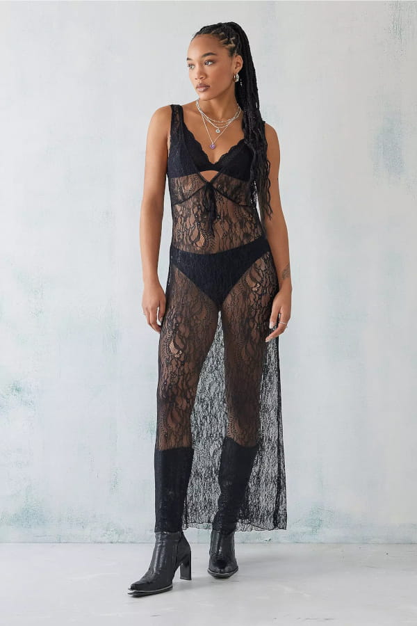 Robe longue en dentelle noire "Nadine" d'Urban Outfitters