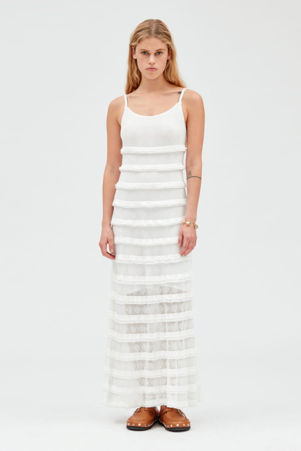 Robe longue en maille ajourée à volants de Claudie Pierlot