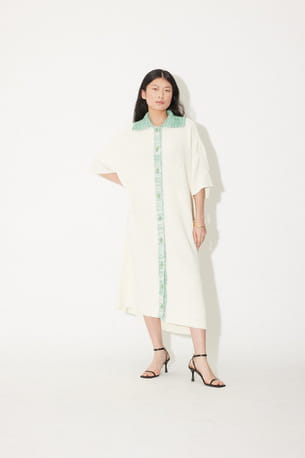 Robe polo bicolore blanc cassé et émeraude "Cliquist" de Valentine Witmeur Lab