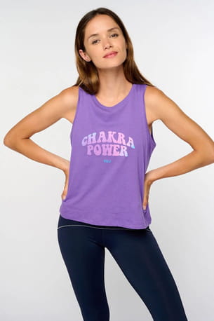 Débardeur de yoga en coton violet "Chakra Power" de Yuj