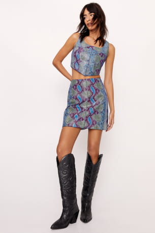 Jupe bleu et mauve en cuir véritable à imprimé serpent de Nasty Gal