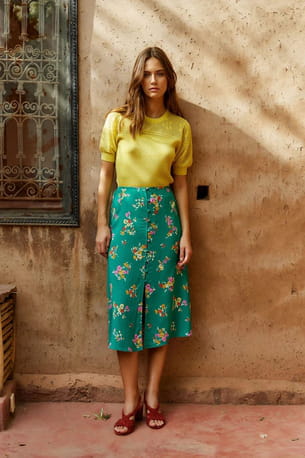Jupe midi taille haute à tissu fleuri "Odélia" de Petite Mendigote