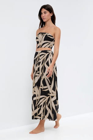 Jupe mi-longue en lin à imprimé tropical à feuilles d'Oysho