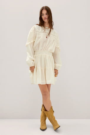 Robe brodée écrue à volants de Mango