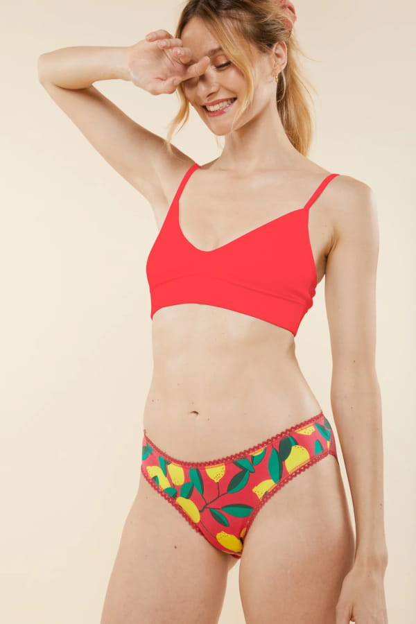Brassière rouge "Paradise Pink" et culotte à motif citron "Pink Lemon" de WeAreJolies