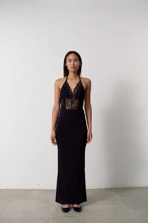 Robe noire dos nu et buste en dentelle "Linda" de Musier