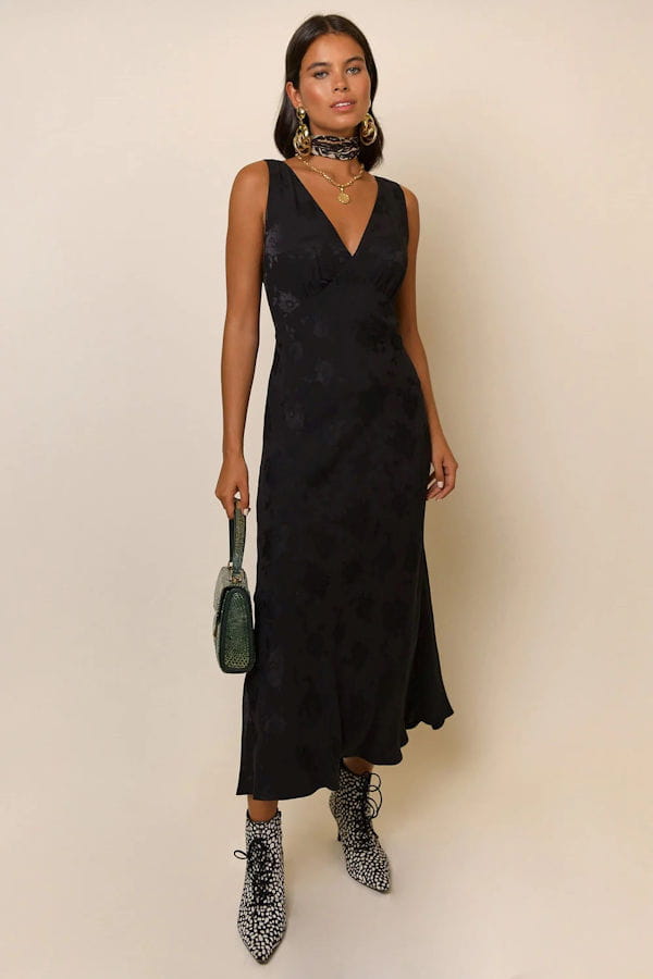 Robe noire longue en jacquard "Sandrine" de Rixo