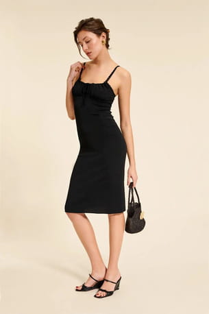 Robe noire à décolleté ajustable © Rouje