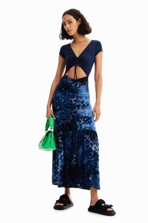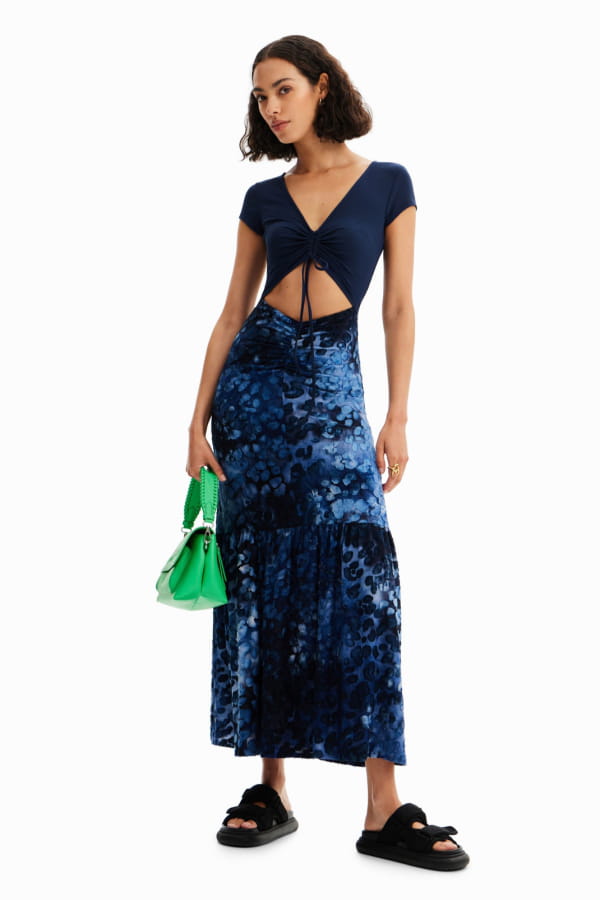 Robe longue bleue combinée texturée à imprimé animal de Desigual