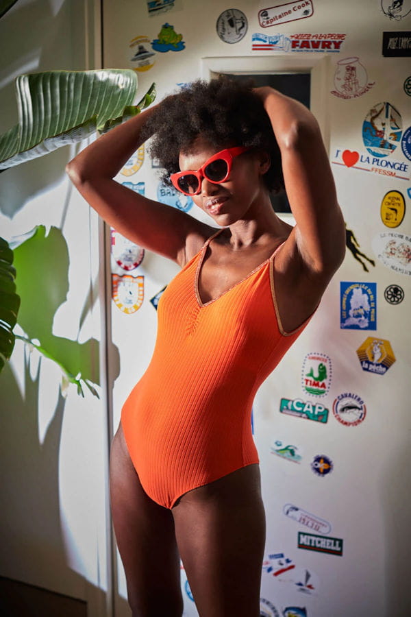 Maillot de bain une pièce orange et bretelles dorées "Bri" de La Nouvelle