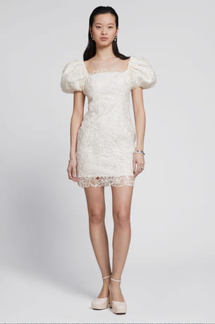 Robe blanche courte en organza à manches ballon et encolure carrée de & Other Stories