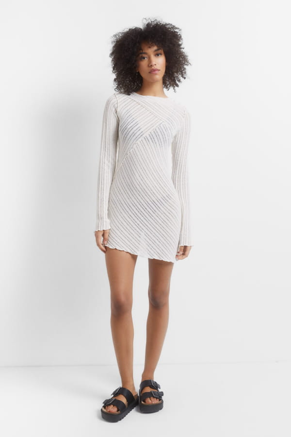 Robe blanche à manches longues, texturée et asymétrique en bas de Pull&Bear