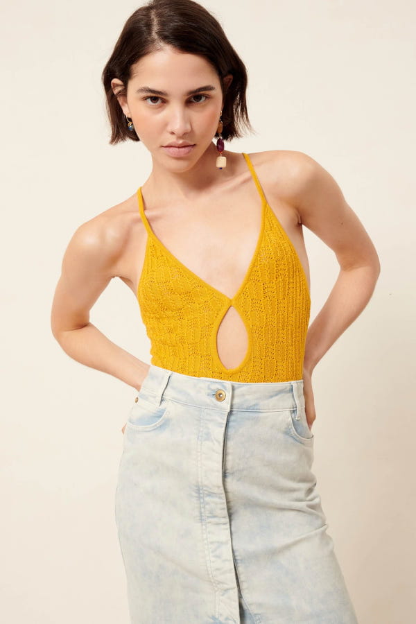 Body jaune à fines bretelles "Lizzani" de Sessùn