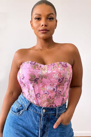 Corset satiné à imprimé fleuri de PrettyLittleThing