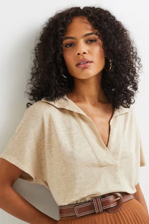 Polo beige en lin de Monoprix
