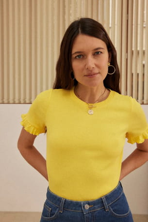 T-shirt jaune à manches volantées "Martine" de Balzac Paris