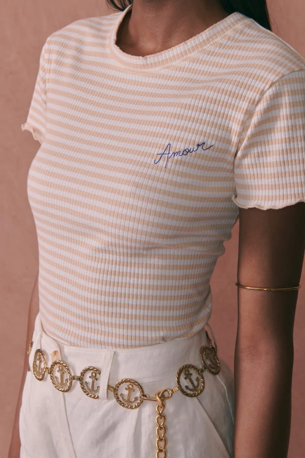 T-shirt rayé côtelé à inscription "Amour" de Maison Labiche