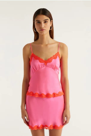 Top caraco en soie rose et rouge "Amanda" de From Future