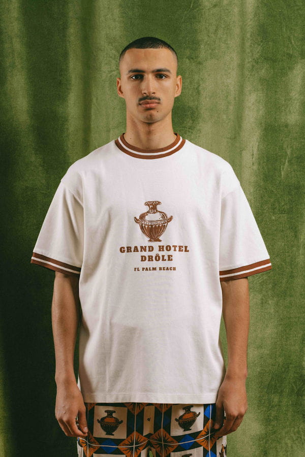 T-shirt blanc à bandes marron "Hôtel Drôle" de Drôle de Monsieur