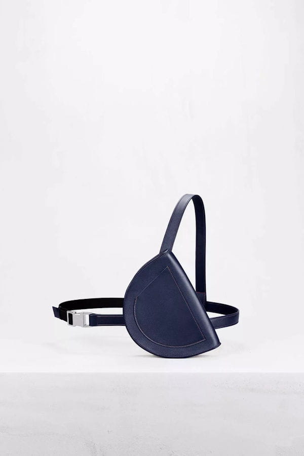 Sac holster bleu indigo en veau lisse "33.06" de Camille Fournet