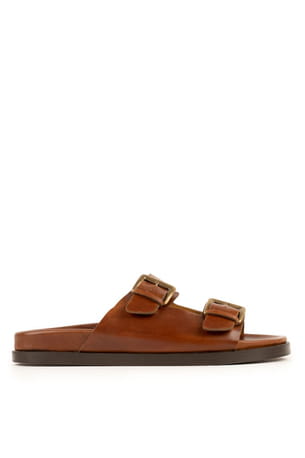 Sandales plates en cuir marron "Shiro Armagnac" de Bobbies