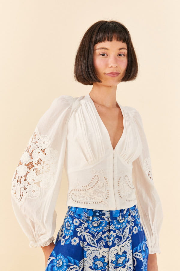Blouse courte blanche en coton "Off-White" de Farm Rio