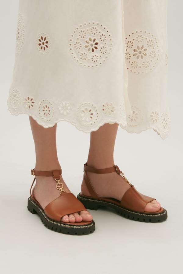 Sandales en cuir camel à brides bijoux de Claudie Pierlot