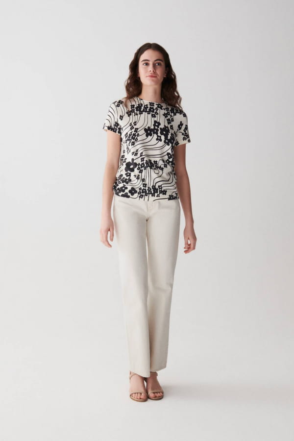 T-shirt noir et blanc imprimé fleurs d'Eric Bompard