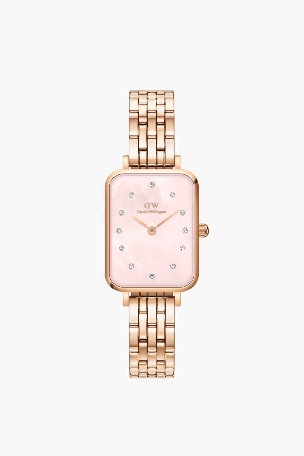 Montre rose gold à cadran rose "Quadro Lumine 5 Link Melrose" de Daniel Wellington