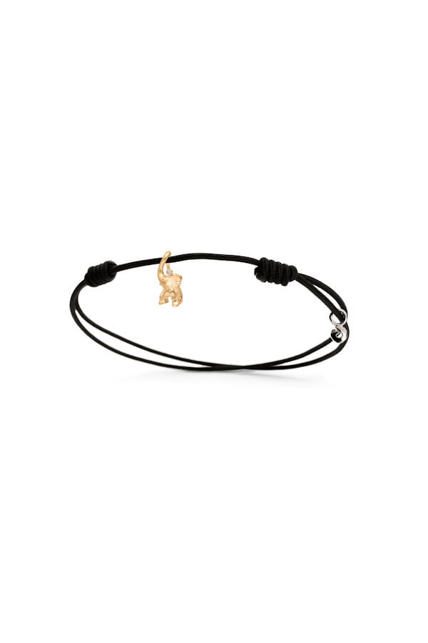 Bracelet éléphant sur cordon noir en or jaune 18 carats d'Ole Lynggaard