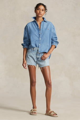Short bleu en denim à ourlet effiloché de Ralph Lauren