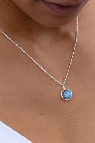 Collier à chaîne perlée avec pierre Labradorite de l'Atelier d'Amaya