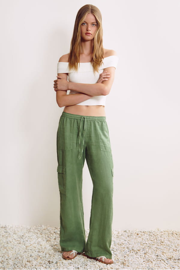 Pantalon vert cargo en lin de Brownie