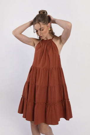Robe courte évasée marron de Molly Bracken