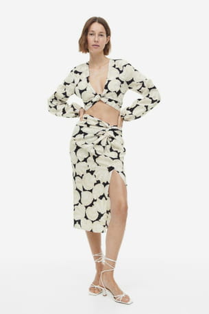 Jupe beige et noir avec détail noué motif coquillages de H&M