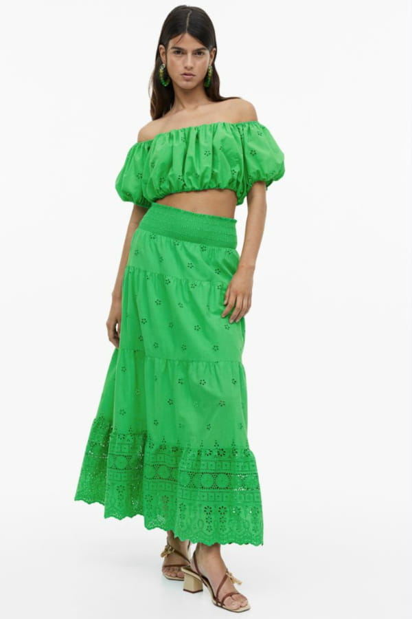 Jupe verte à broderies anglaises de H&M