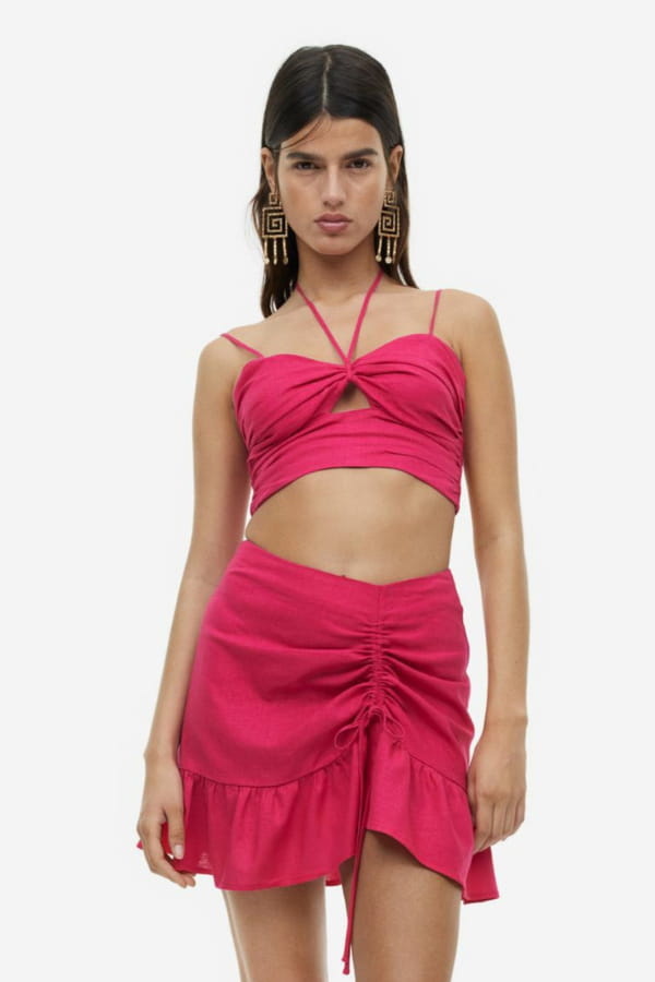 Jupe rose en lin mélangé avec lien de serrage de H&M