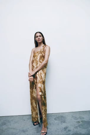 Robe kaki longue asymétrique imprimée et fendue de Zara