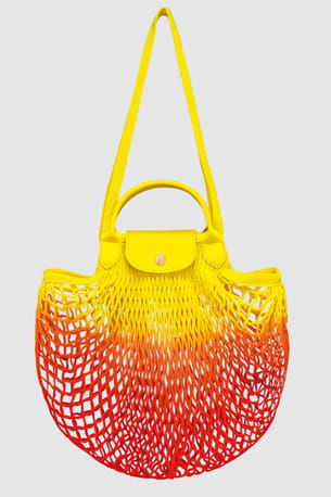 Sac à main filet jaune et orange "Le Pliage" de Longchamp