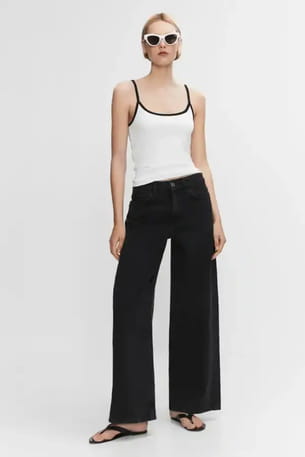 Top blanc et noir à bretelles contrastantes de Mango